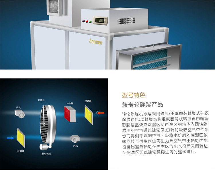 安诗曼是专业转轮除湿机生产厂家,主要产品有工业除湿机,高温烘干机,转轮除湿机,低温除湿机,吊顶除湿机,商用抽湿机,商用除湿机,工业抽湿机,工业干燥机等产品