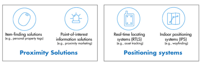 蓝牙因其无处不在的特性脱颖而出。挑战在于如何以标准的方式实现定位服务。到目前为止,蓝牙已经提供了有用但精度较低的定位信息(图1)。蓝牙低能量(BLE)标准允许两个蓝牙设备利用接收到的信号强度测量来获得两个设备之间的大致距离。这提供了很好的接近信息,当不需要详细的位置信息时是非常有效的。